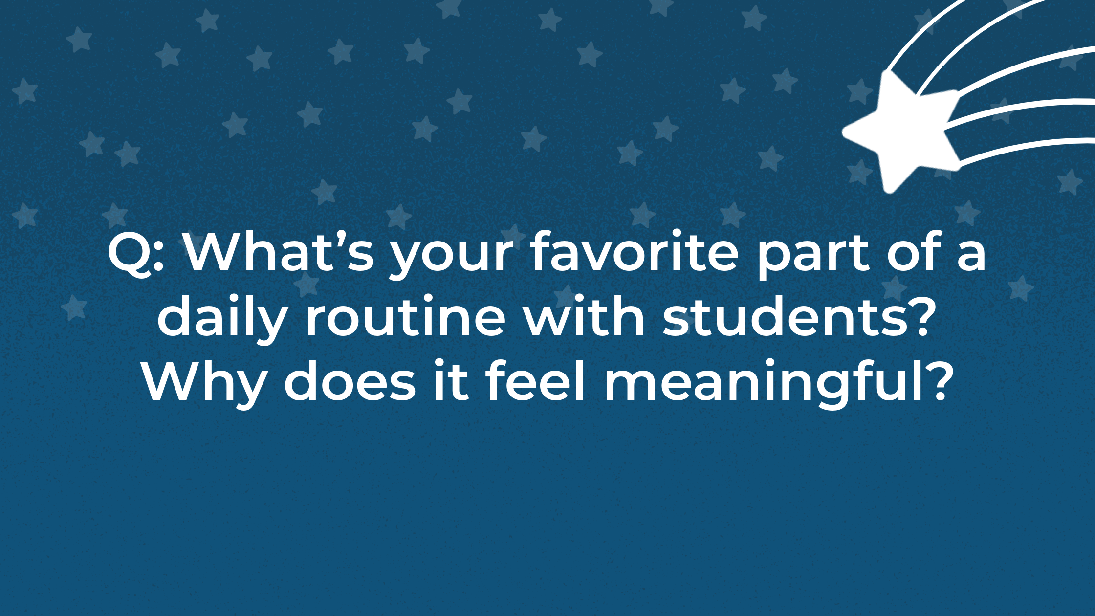 Q:What’s your favorite part of a daily routine with students? Why does it feel meaningful?